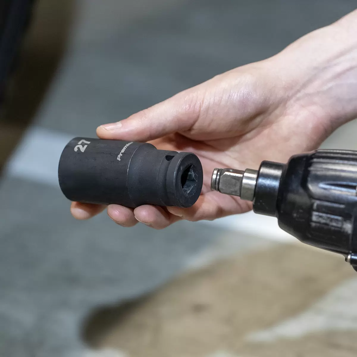 Contents: Standard Sockets; 10, 11, 12, 13, 14, 15, 16, 17, 18, 19, 21, 22, 24, 27, 30, 32mm, Extension Bars; 75, 150, 250mm, Universal Joint, Adaptors; 1/2"(F) x 3/8"(M), 1/2"(F) x 3/4"(M)