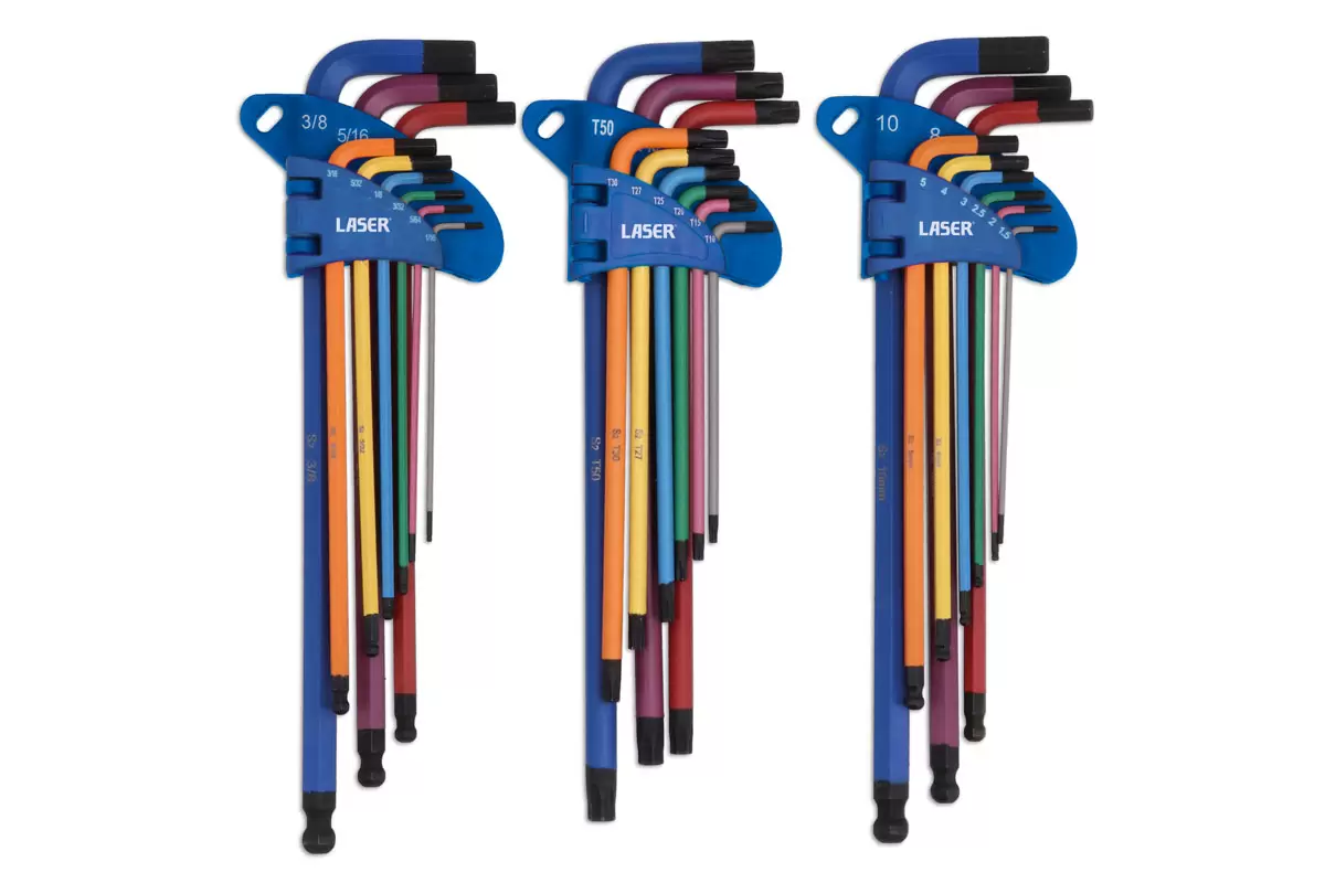 Laser - 9244 - Extra Long Series Colour Coded Hex & Star Key Set 27pc