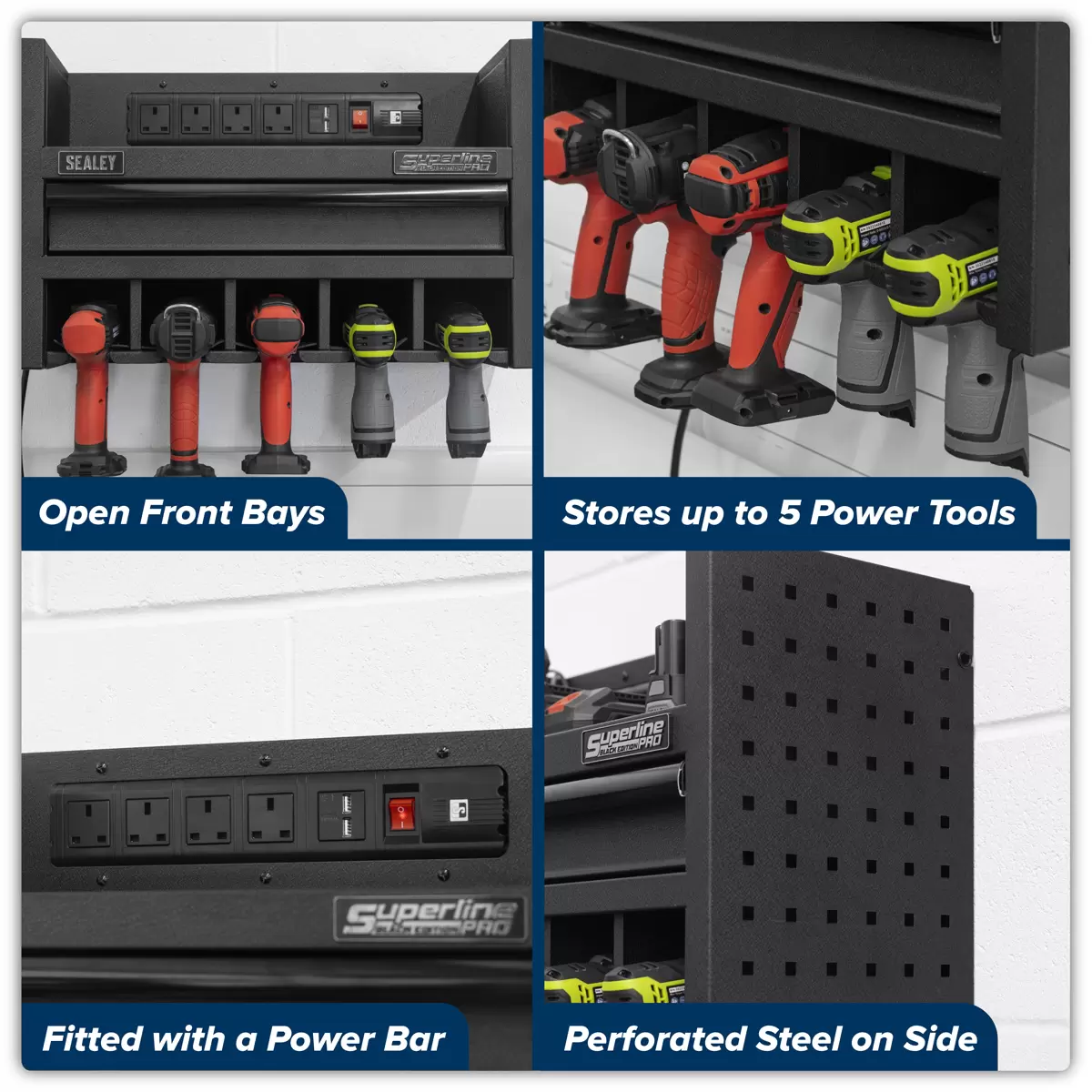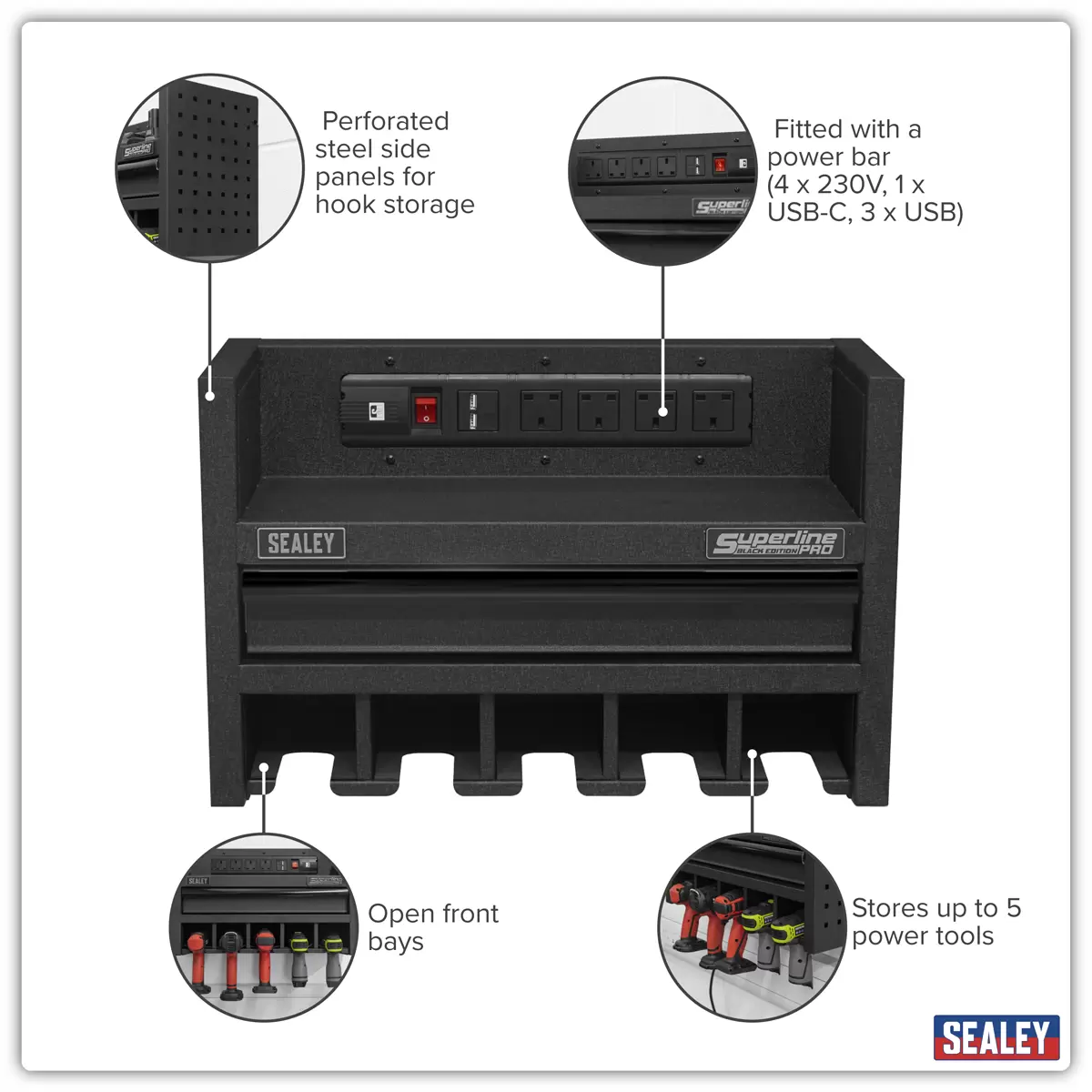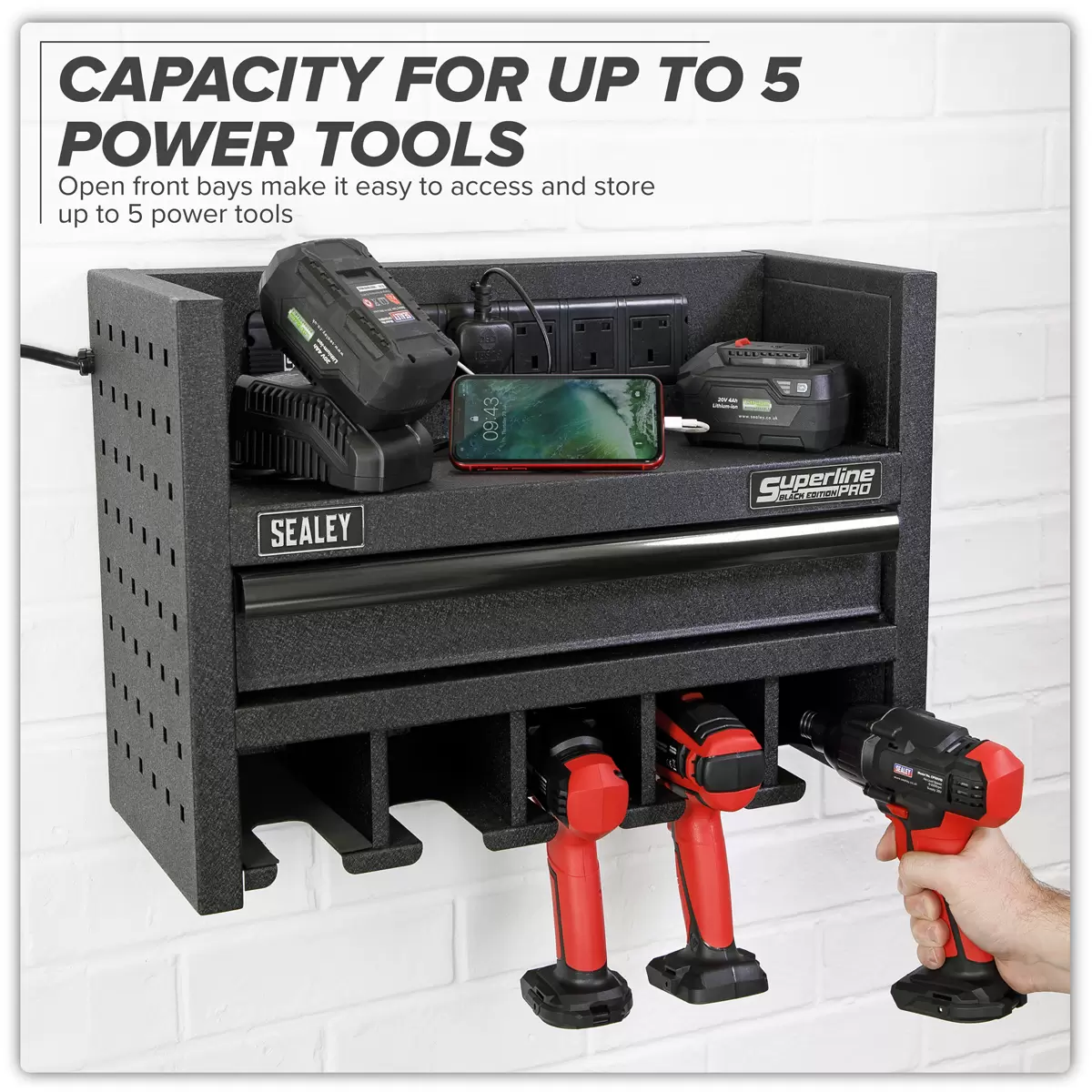 Sealey - AP22SRBE - Superline PRO® Power Tool Storage Rack with Drawer & Power Bar