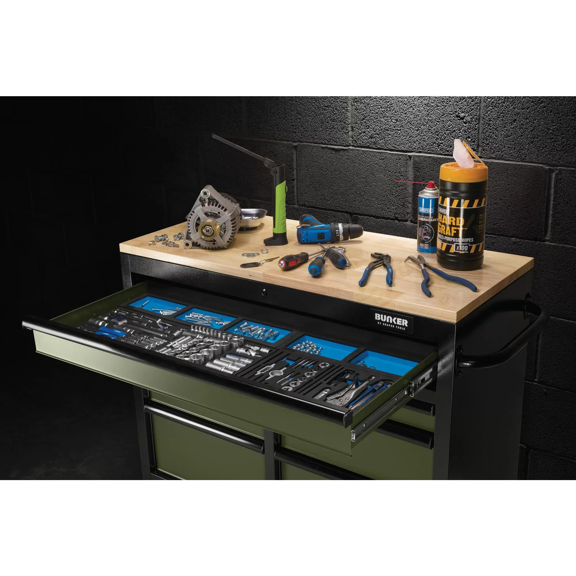 Home > Workstations / Storage > Storage & Workstations > Draper Tools - 27209 - BUNKER 7 Drawer Workbench Roller Tool Cabinet, 41", Green