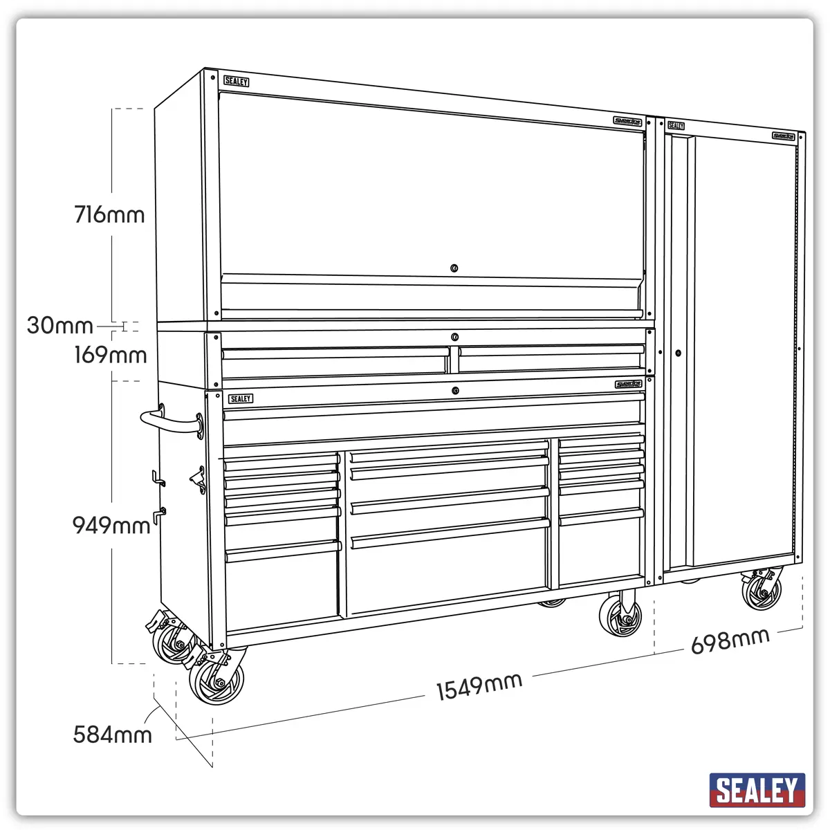 Sealey - AP6115BECOMBO2 - Superline PRO® Black Edition Mobile Trolley with Wooden Worktop, Hutch, 2 Drawer Riser & Side Locker 15 Drawer 1549mm