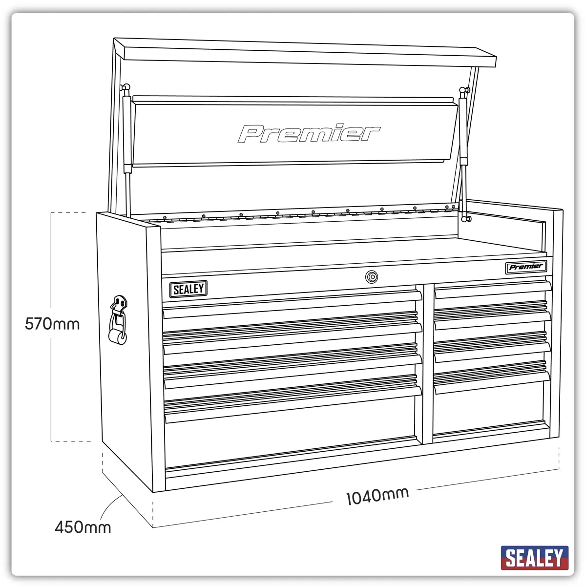 Home > Workstations / Storage > Storage & Workstations > Sealey - PTB104008 - Premier™ Heavy-Duty Extra-Wide Topchest 8 Drawer 1040mm - Black