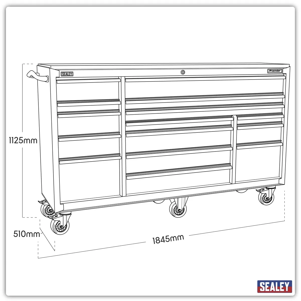 Sealey - PTB183015 - Premier™ Heavy-Duty Extra-Wide Rollcab 15 Drawer 1845mm - Black