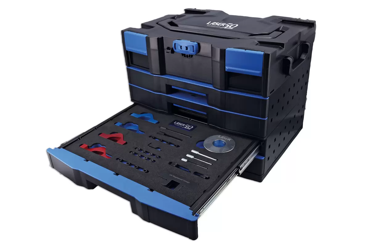 Presented in a LD33 foam tray (400 x 290 x 45mm), convenient for user storage and limiting packaging waste. Sized to fit directly into Laser Tools premium stackable 4 drawer storage system, Part No. 9283.