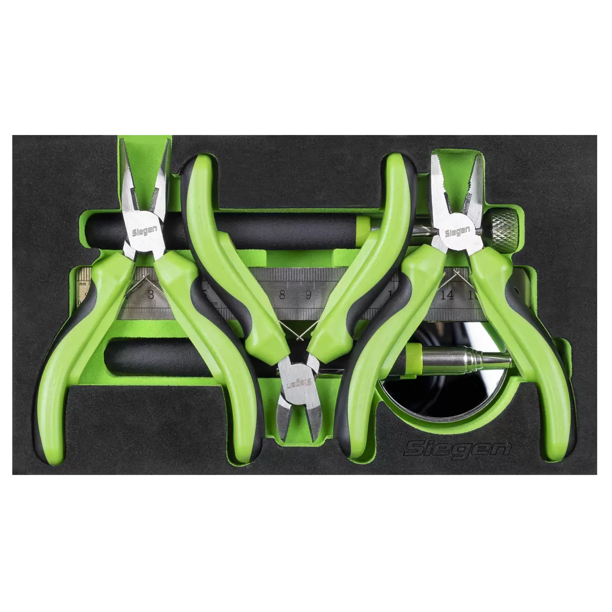 Drawer 2: 110mm Mini Side Cutter, 125mm Mini Long Nose Pliers, 115mm Mini Combination Pliers, 2.2kg Magnetic Pick-Up Tool, Ø50mm Inspection Mirror, 150mm(6") Stainless Steel Rule