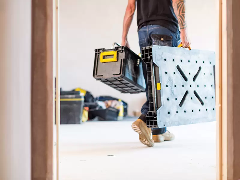 Thanks to its quick collapsing, durable metal legs, the FATMAX Express Folding Workbench can be easily set up in seconds and is exceptionally solid and stable, supporting up to 455kg of material. Once each job is finished, the user can fold the workbench effortlessly into a compact unit for easy storage or transportation to the next working location. Two sturdy handles, one on the side and one at the end, add to its portable construction.