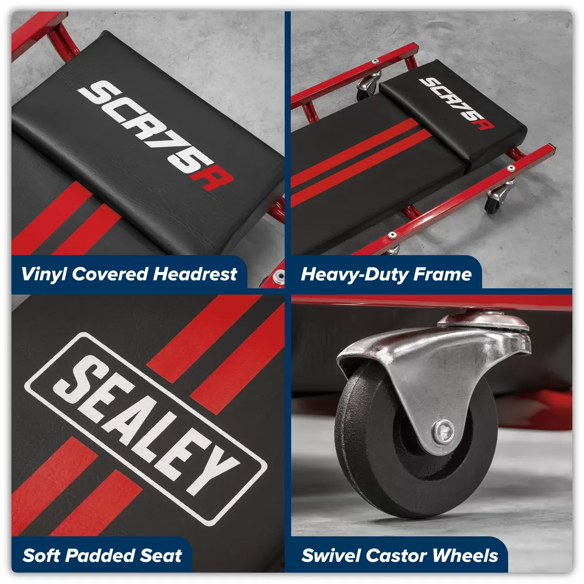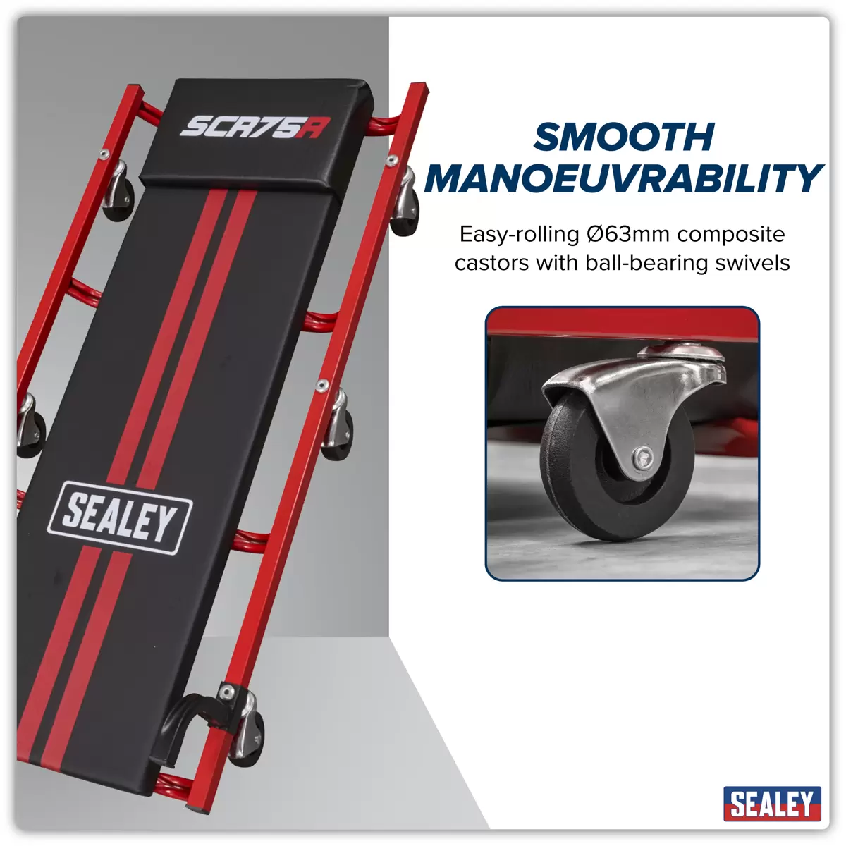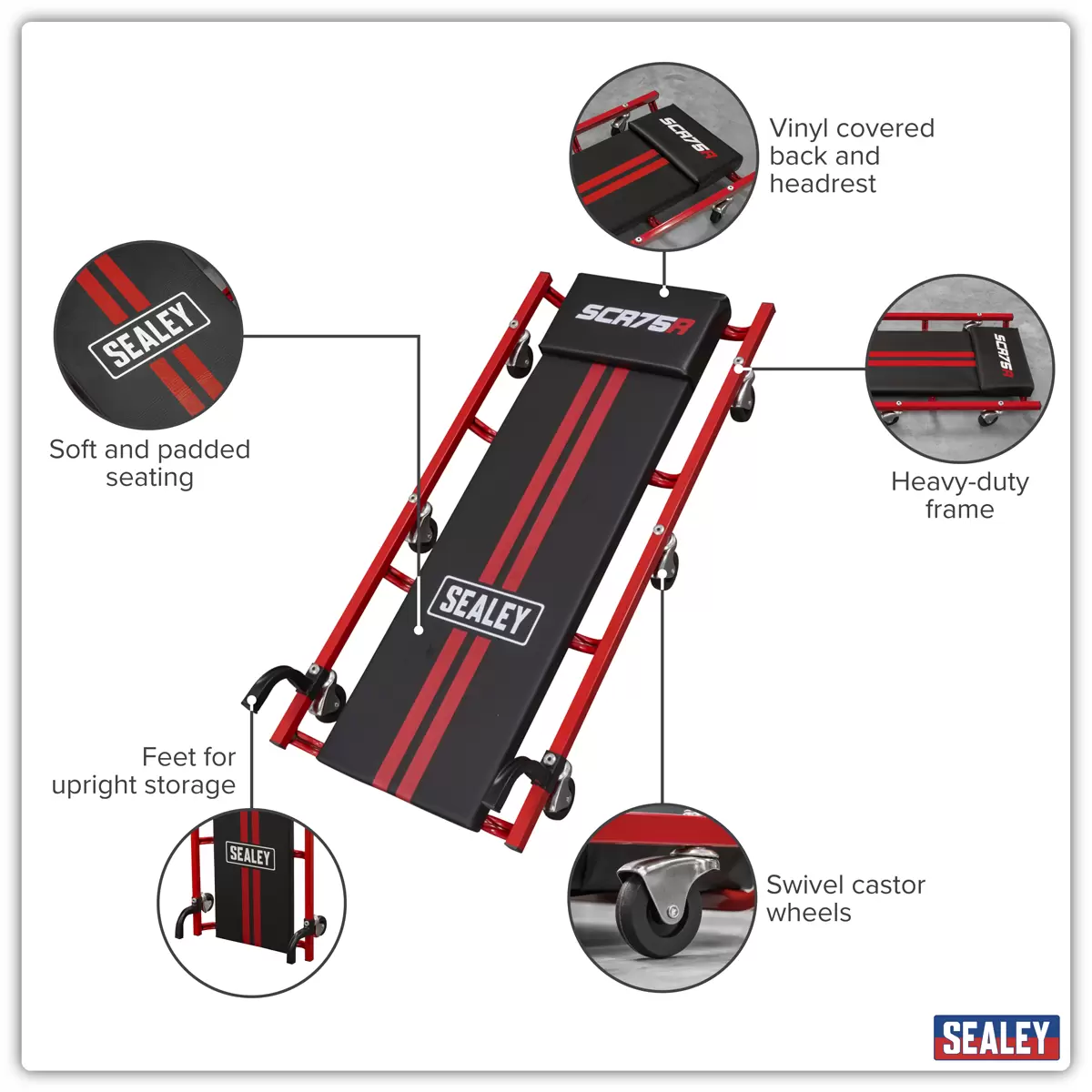 Sealey - SCR75 - 36" Deluxe American-Style Creeper with Steel Frame & 6 Wheels - Red