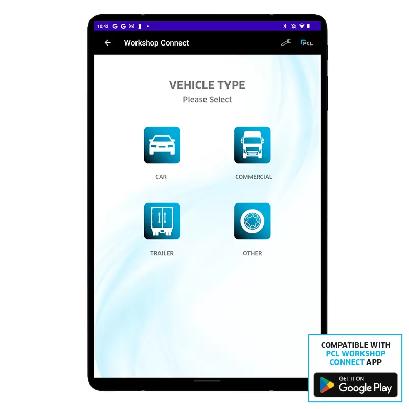 Users of the Bluetooth enabled QUBE Tyre Inflator can download the free PCL WORKSHOP CONNECT APP and benefit from: