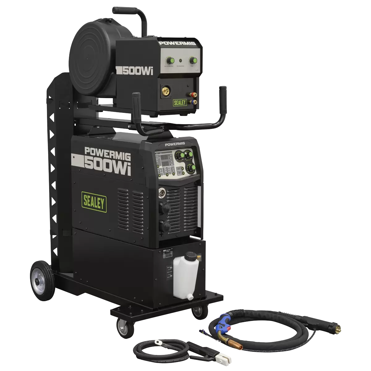 Home > Handtools > Welding & Cutting > Sealey - POWERMIG500Wi - 500A Professional Gas/Gasless MIG/TIG/MMA Inverter Welder with Portable Wire Feeder & Water Cooler 400V 3ph