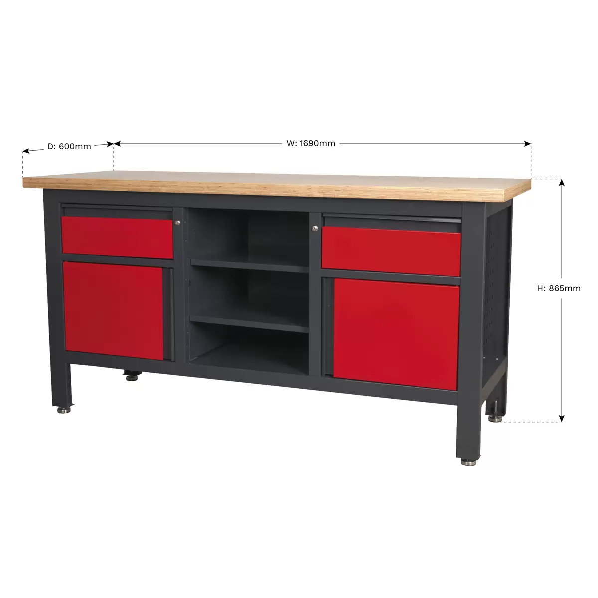 Sealey - AP1905A - Workbench with 2 Drawers, 2 Cupboards & Open Storage