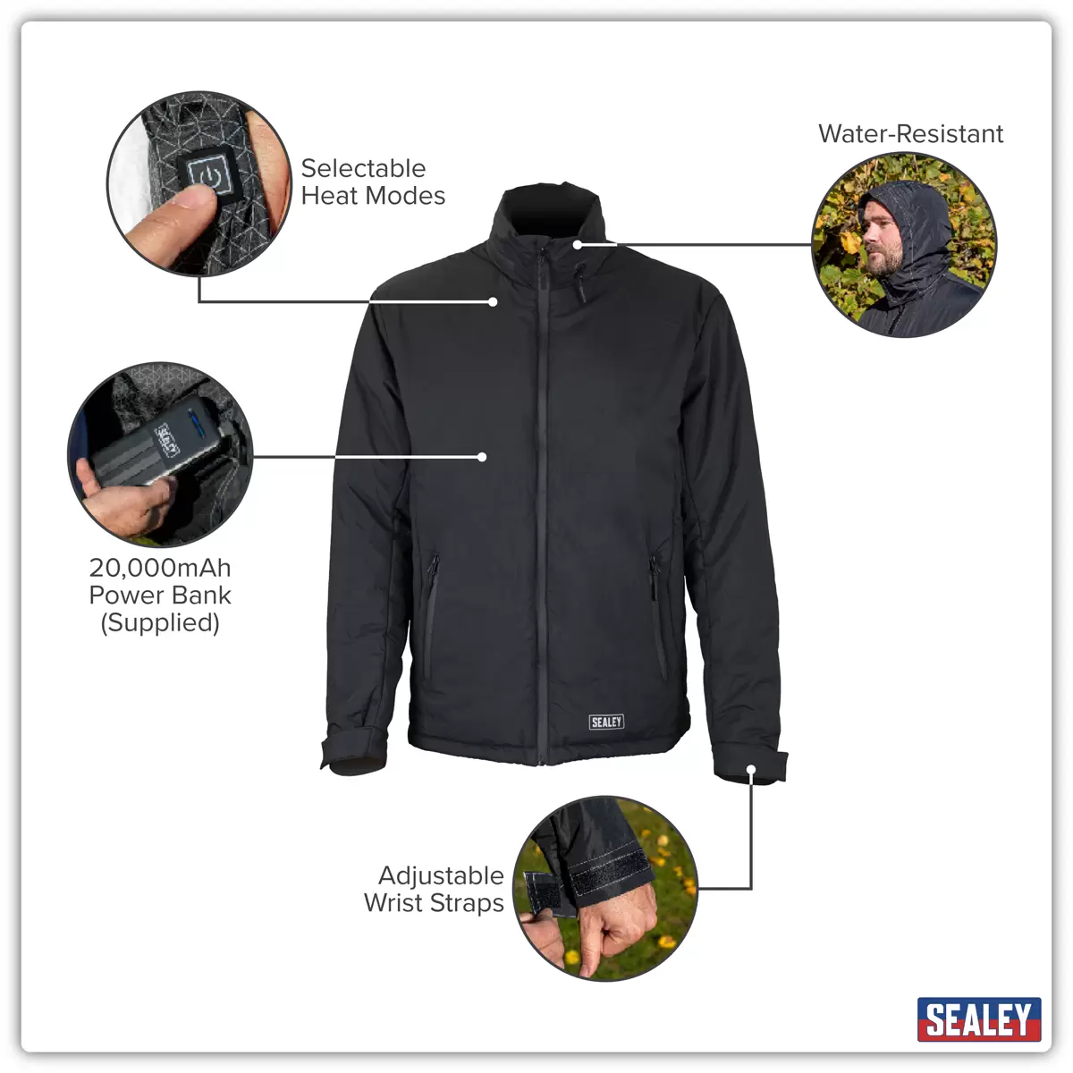 Sealey - HJ07KIT - 5V Heated Rain Jacket with Power Bank 20Ah - Large